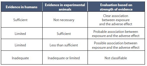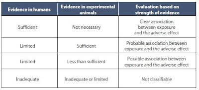 The overall evaluation for both cancer and reproductive/developmental effects was obtained by the integration of the human/animal evidence as follows: